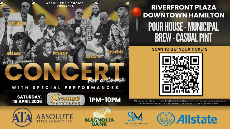 Saturday April 18, the 6th Annual Concert for a Cause is taking over Riverfront Plaza in Downtown Hamilton. A full day of fun and live music bringing local businesses and all of us together to help support pediatric cancer. All proceeds directly fuel Bryttan's Battalion. A pediatric cancer foundation that provides crit...