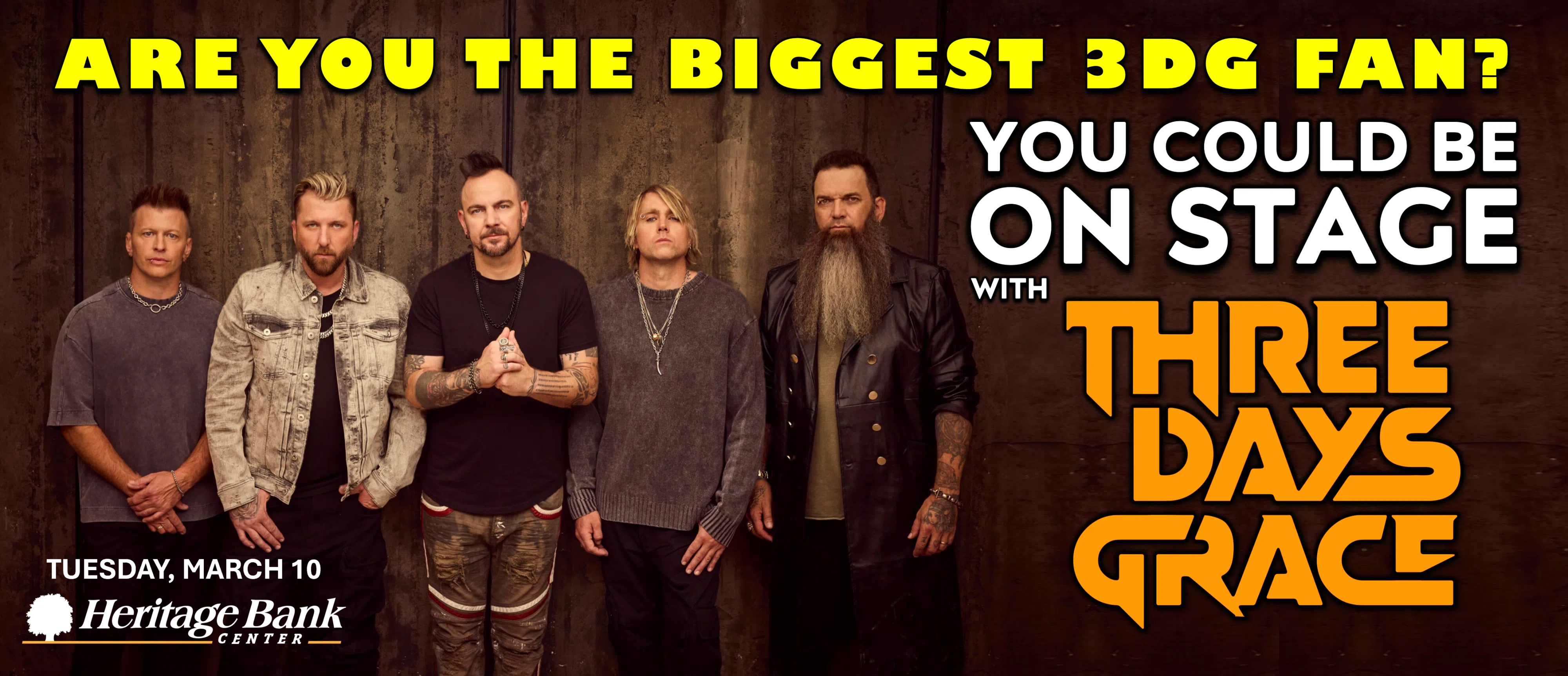 96ROCK is searching for the BIGGEST Three Days Grace fan on the entire planet... and it could be YOU. And listen... this isn't backstage. It's not VIP. It's not side stage. This is ON. THE. STAGE. A once‑in‑a‑lifetime moment where you and a guest stand WITH Three Days Grace... during a song... in front of the ent...